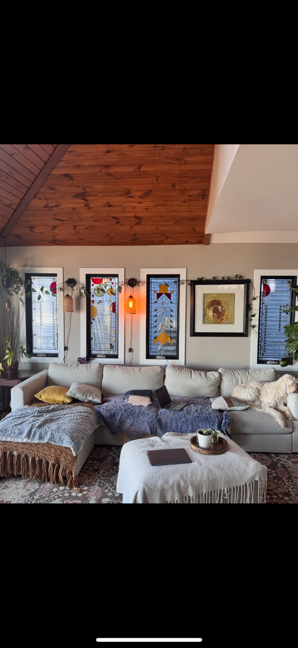 This 4-piece collection was created to fit into the four windows in the living room in Middleton, WI. (The dog is also a piece of art, but not my creation!)